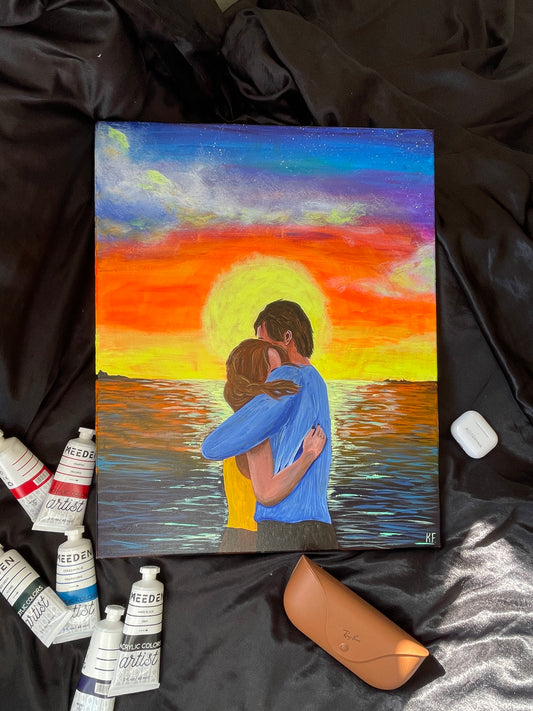 Sunset Hug - Interior Wall Decor 16x20' - Original Painting on Canvas
