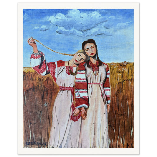 Ukrainian friends. Ukrainian Dress. Acrylic Art. Wall Poster. Printed Art.
