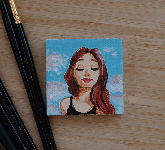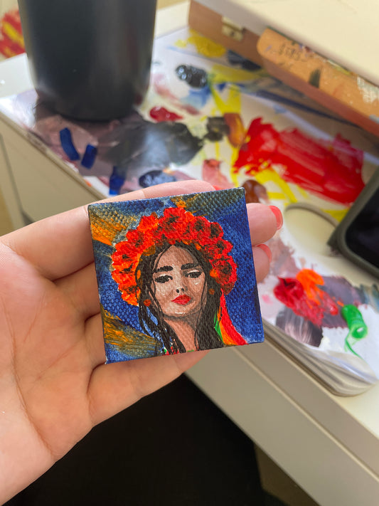 Small Original Painting. Woman Portrait 2x2. Painting on Canvas. Best Unique Gift Idea for her, for him. Wall Decor Art. Table Decor